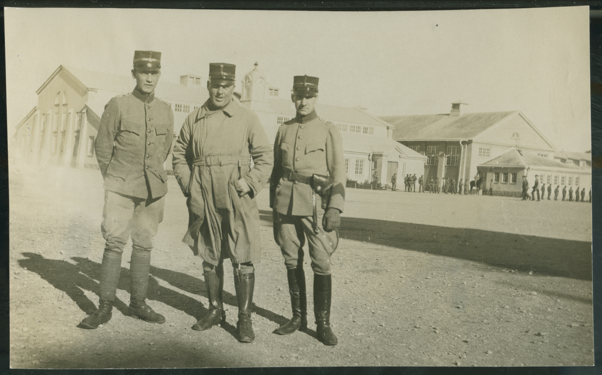 På kuvertet står följande information sammanställd vid museets första genomgång av materialet: Till höger Löjtnant Anjon i mitten Löjtnant Paul Rune Dahlman till vänster u.Löjtnant v. Friedricks