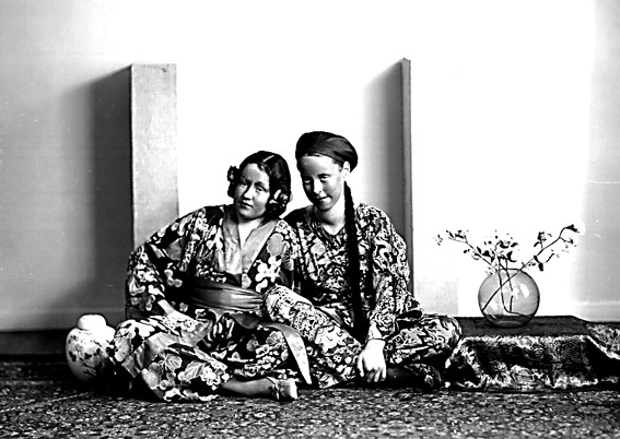 Två flickor i scenkläder.