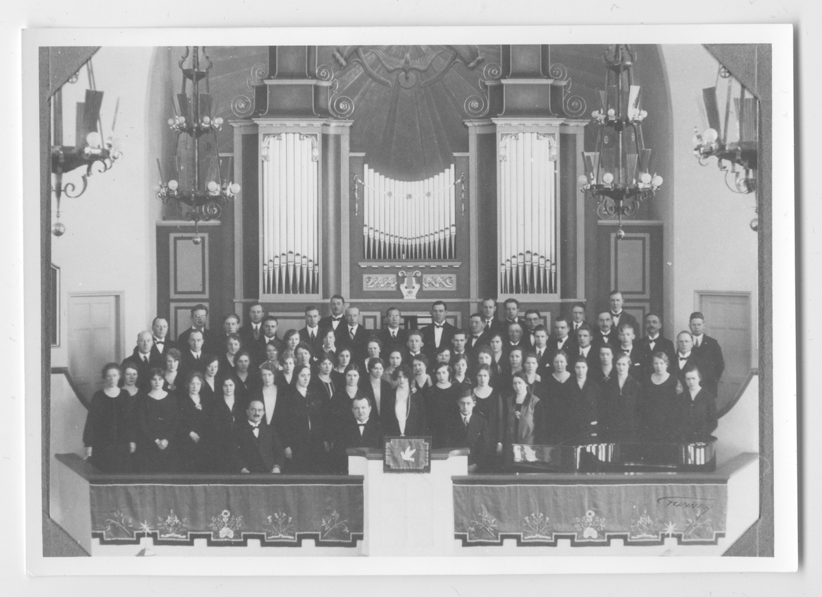 På kuvertet står följande information sammanställd vid museets första genomgång av materialet: Sångkören Nya Betlehems Kyrkan. Gåva av fru Magnusson, Bromma år 1983