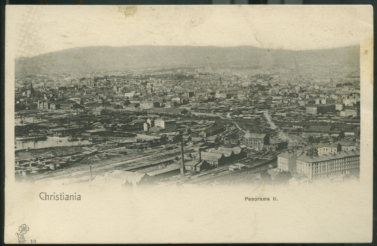 På kuvertet står följande information sammanställd vid museets första genomgång av materialet: Kristiania (Oslo) Stadsvy.