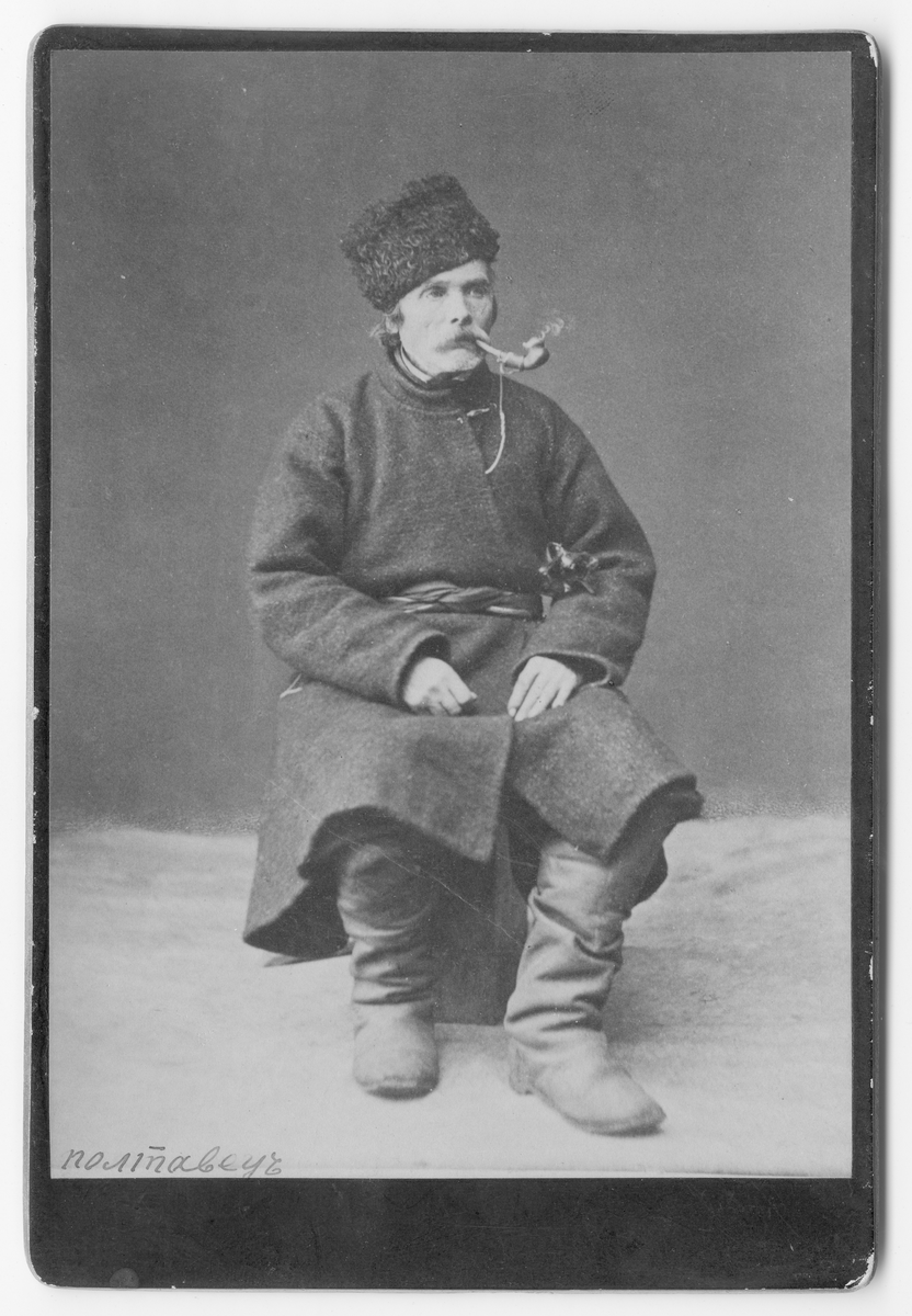 På kuvertet står följande information sammanställd vid museets första genomgång av materialet: Bonde från trakten av Poltava.