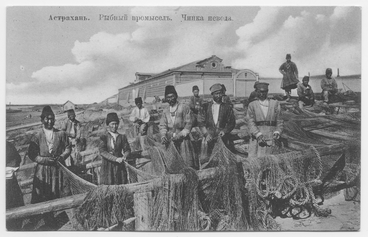 På kuvertet står följande information sammanställd vid museets första genomgång av materialet: Kolmucker reparerar fiskenät.
