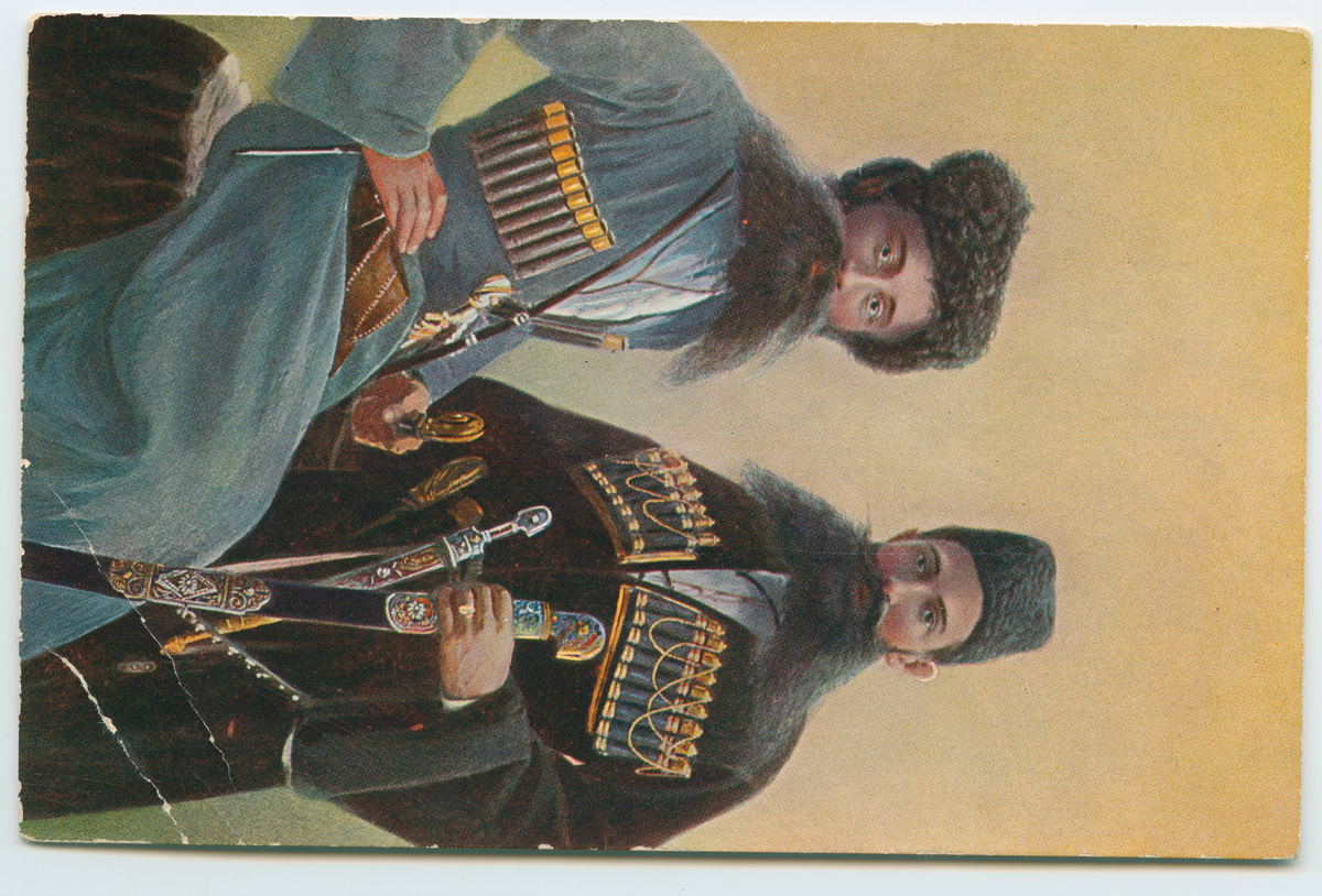 På kuvertet står följande information sammanställd vid museets första genomgång av materialet: Kaukasiska typer.