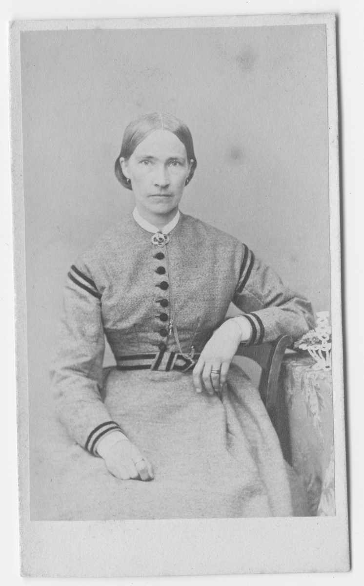 På kuvertet står följande information sammanställd vid museets första genomgång av materialet: Porträtt dam