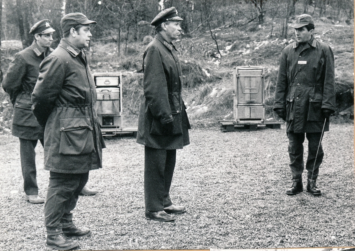 Frv. MB följebefäl, överstelöjtnant Björn Bernroth, general Nils Sköld och kompanichefen major Håkan Waernulf (senare inspektör för pansartrupperna)