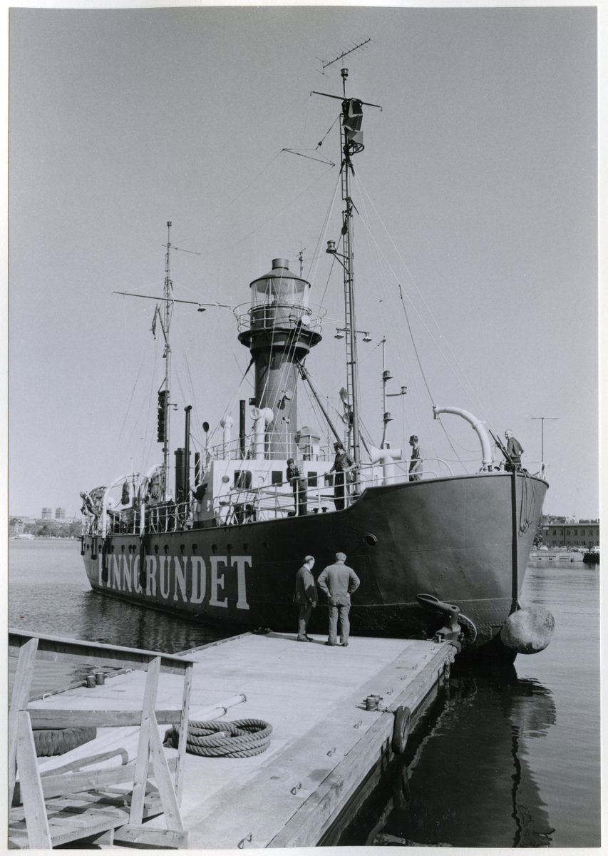 [från fotobeskrivningen:] "FINNGRUNDET flyttas från Rosenvik till Wasavarvet""3.6.1970"