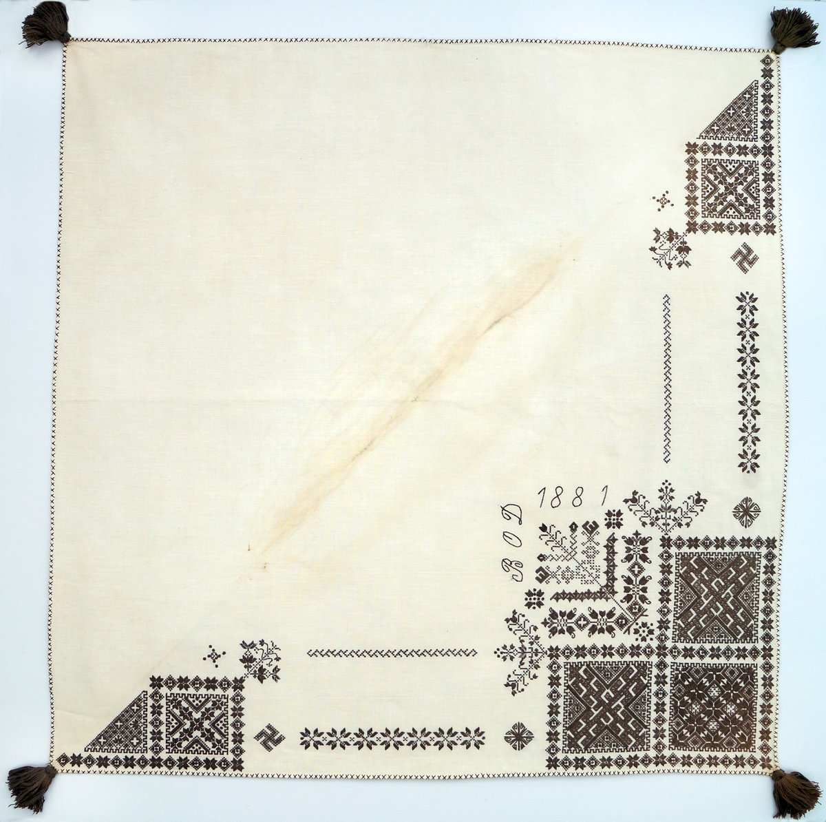 Ornament: hakkors, blomsterliknande kvadrater och prickar i plattsöm
