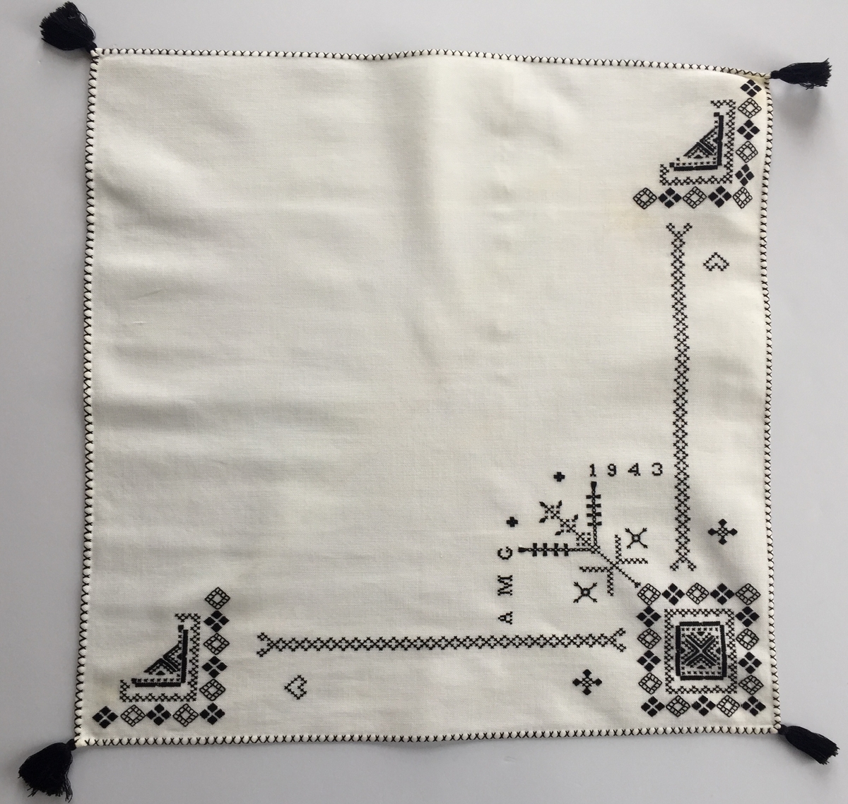 På ryggsnibben endast en kvadrat med geometriskt mönster samt märkning med initialer och årtal. En bård mellan ryggsnibb och framsnibb. På framsnibbarna endast en halv kvadrat. Åtta ornament