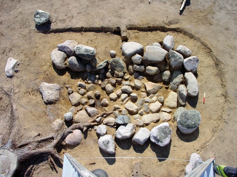 De olika undersökningsmomenten av skelettgraven A9 på gravfältet RAÄ Barnarp 22, L1974:2431 på Torsvik i Jönköping. I botten framkom fynd i form av en kniv, en nål, två bronsringar, keramik samt ett oidentifierat järnföremål. Av skelettet återstod dock ingenting.