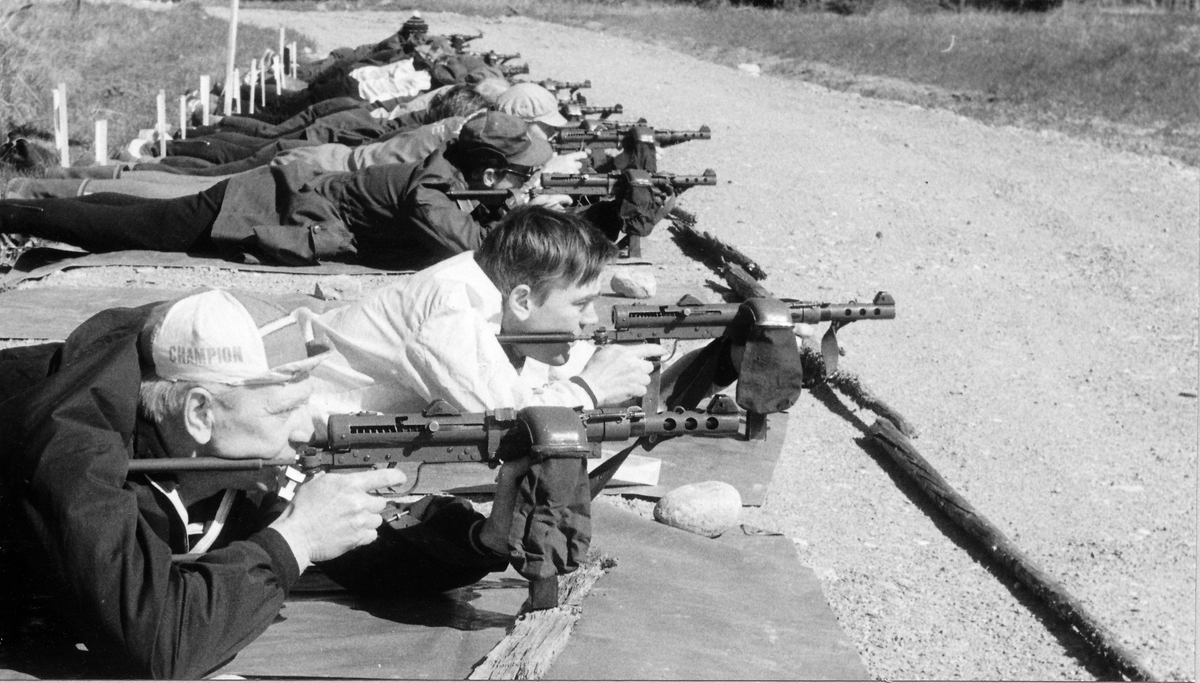 Bild 1 Liggande skjutning, i förgrunden kaptenerna Erik Larsson och Yngve Pettersson