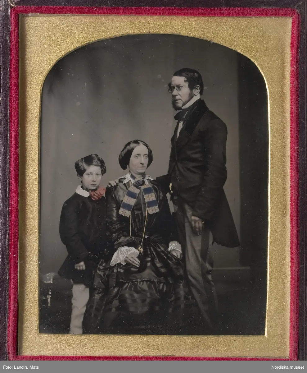 Porträtt. Köpman Blidberg med familj. Ambrotypi, handkolorerad. Nordiska museet inv.nr 109277.