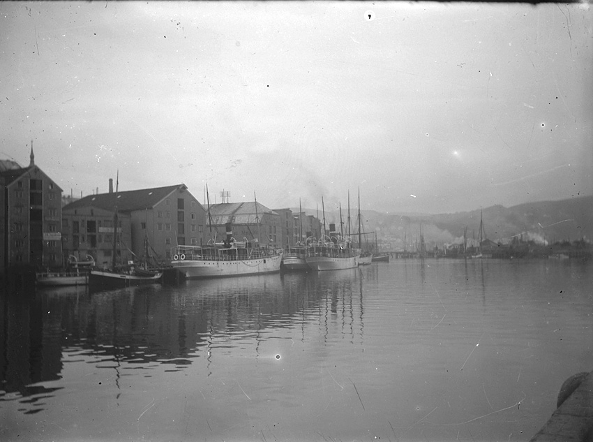 Större båtar vid kaj i hamn, Norge.
