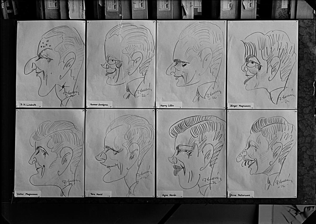 KFUM, Västerås. Karikatyrer av flera personer.