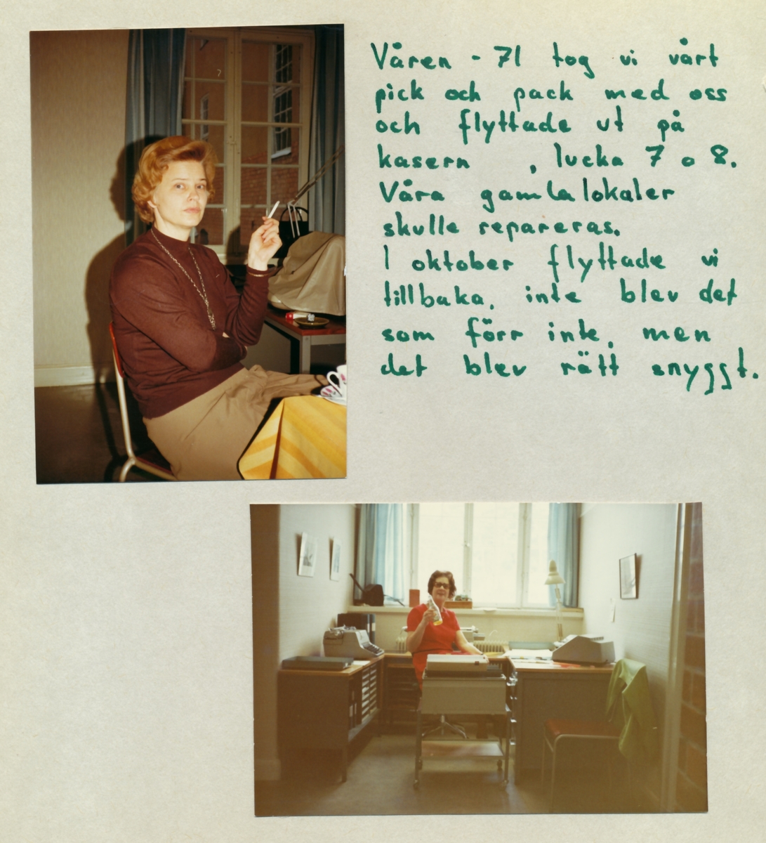 Våren 1971 flyttade vi till två logement eftersom våra lokaler i by 11 skulle renoveras. Den 1 oktober flyttade vi tillbaks igen, inte som förr, men rätt snyggt.