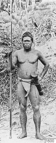 Man med blåsrör och koger för pilar. (Efter W.W. Skeat o C.O. Blagden: Pagan Races of the Malaya Peninsula). Georg Buschan: Illustrierte Völkerkunde. II:I. Stuttgart 1923. Abb. 442, p. 701.