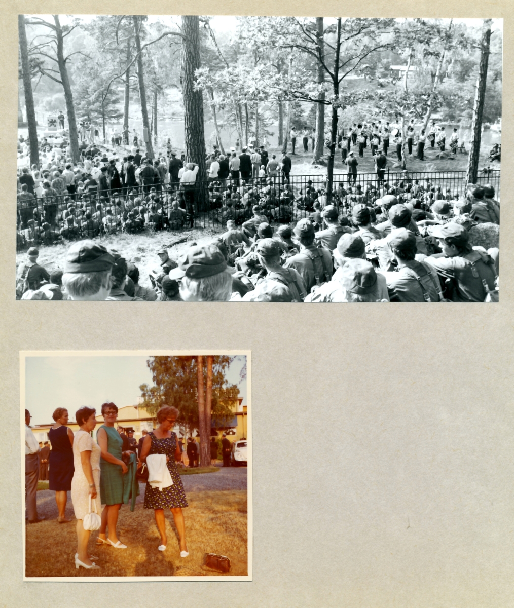 Bild 1. Åldersklassen sitter i slänten. Musikkåren underhåller