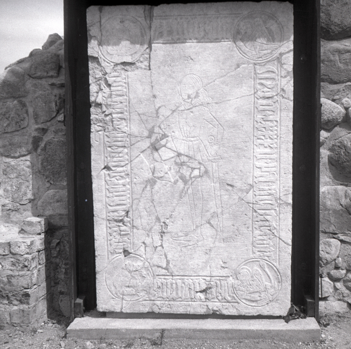 En stenrelief, detalj föreställer ett svärd.