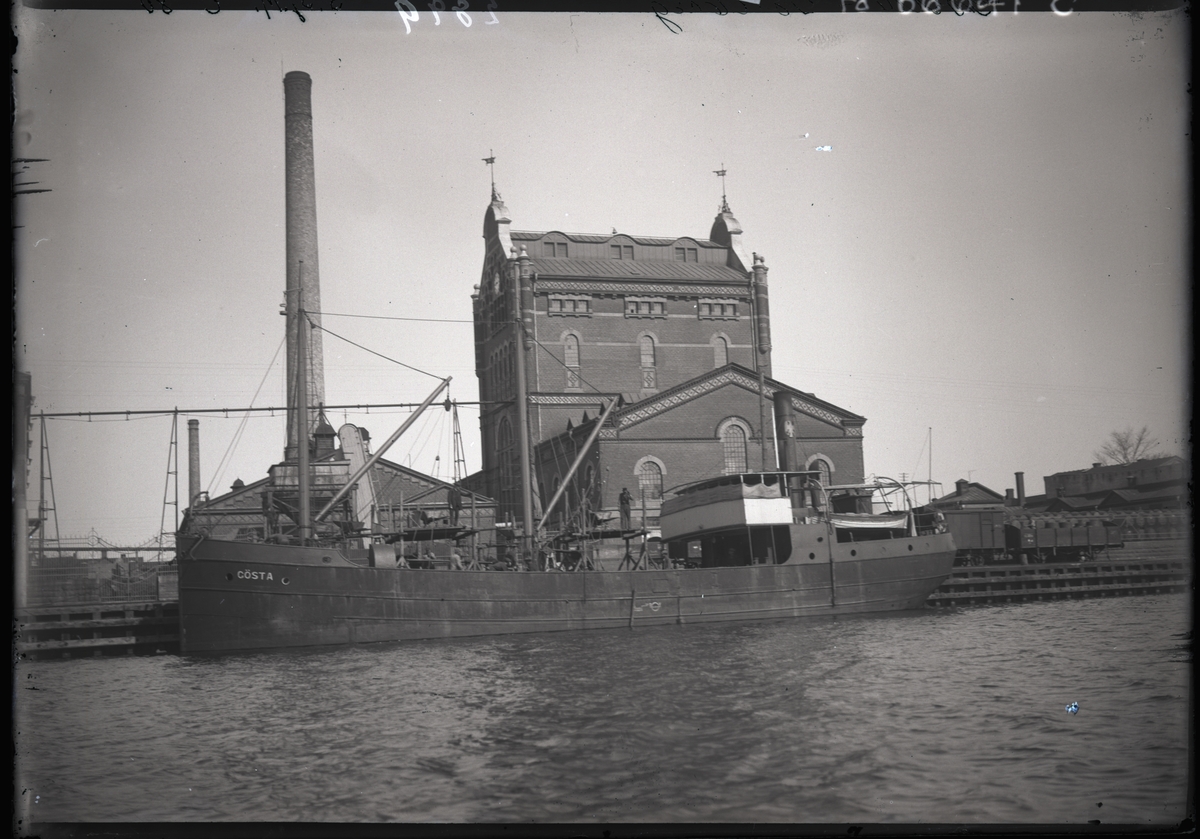 Lastångfartyget GÖSTA av Göteborg i Åhus hamn, 27 april 1919.