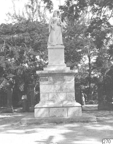 Staty av drottning Victoria. Obs. plakatet på sockeln.