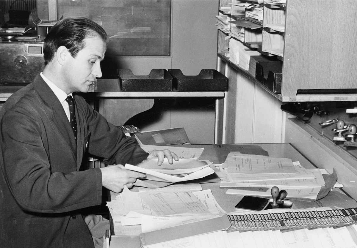 Folke Eklund på Volvos postavdelning stoppar ett brev till Volvos