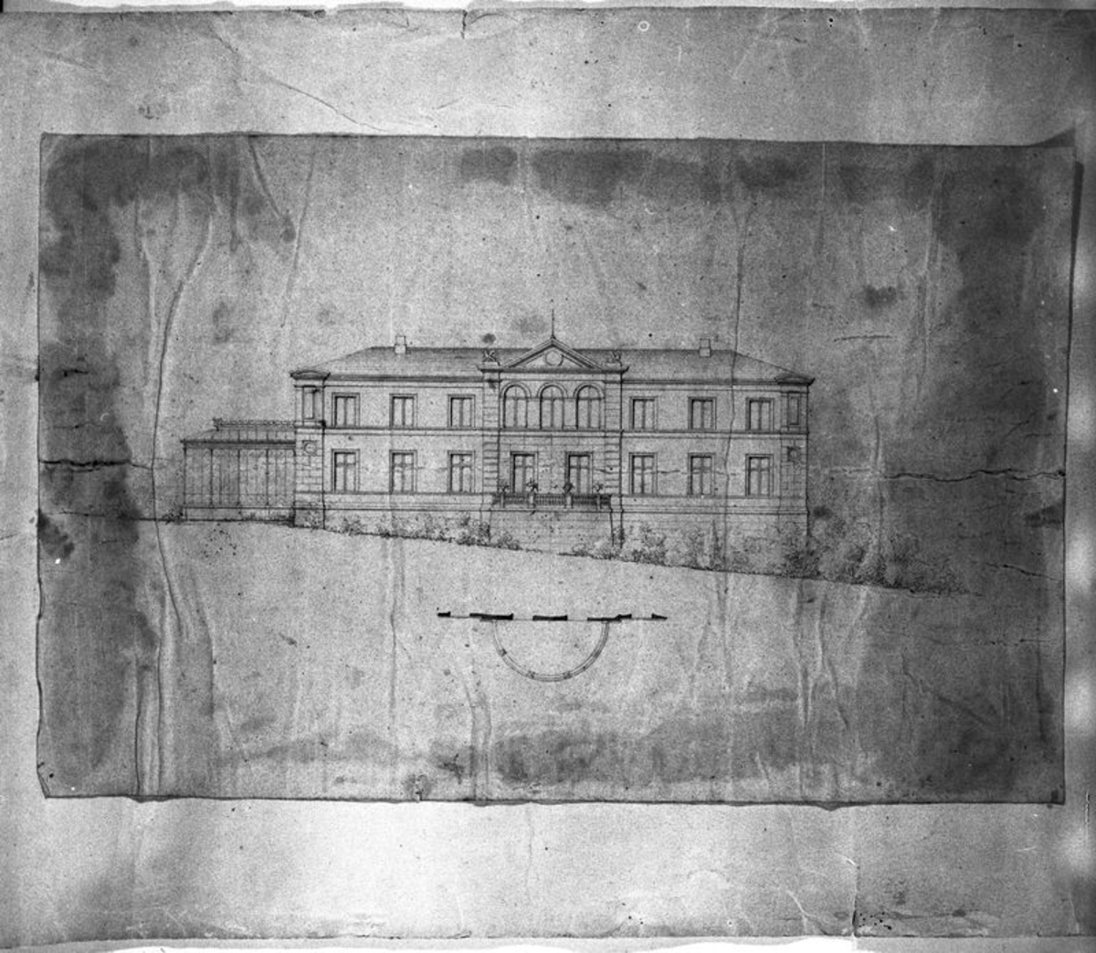 Blyertsritning. Förslag till slottets baksida. Nääs