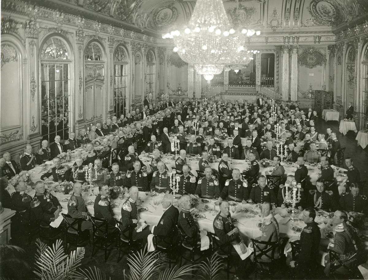 Krigshögskolans jubileumsmiddag i Grand Hotels spegelsal 1928.
