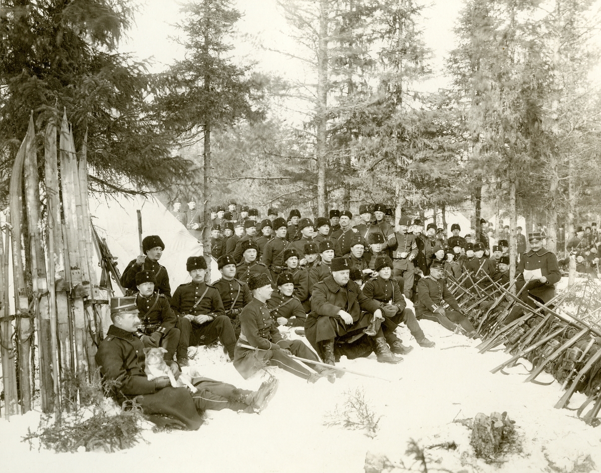 Grupporträtt av officerare och soldater vid Västerbottens regemente I 20, Umeå 1900.