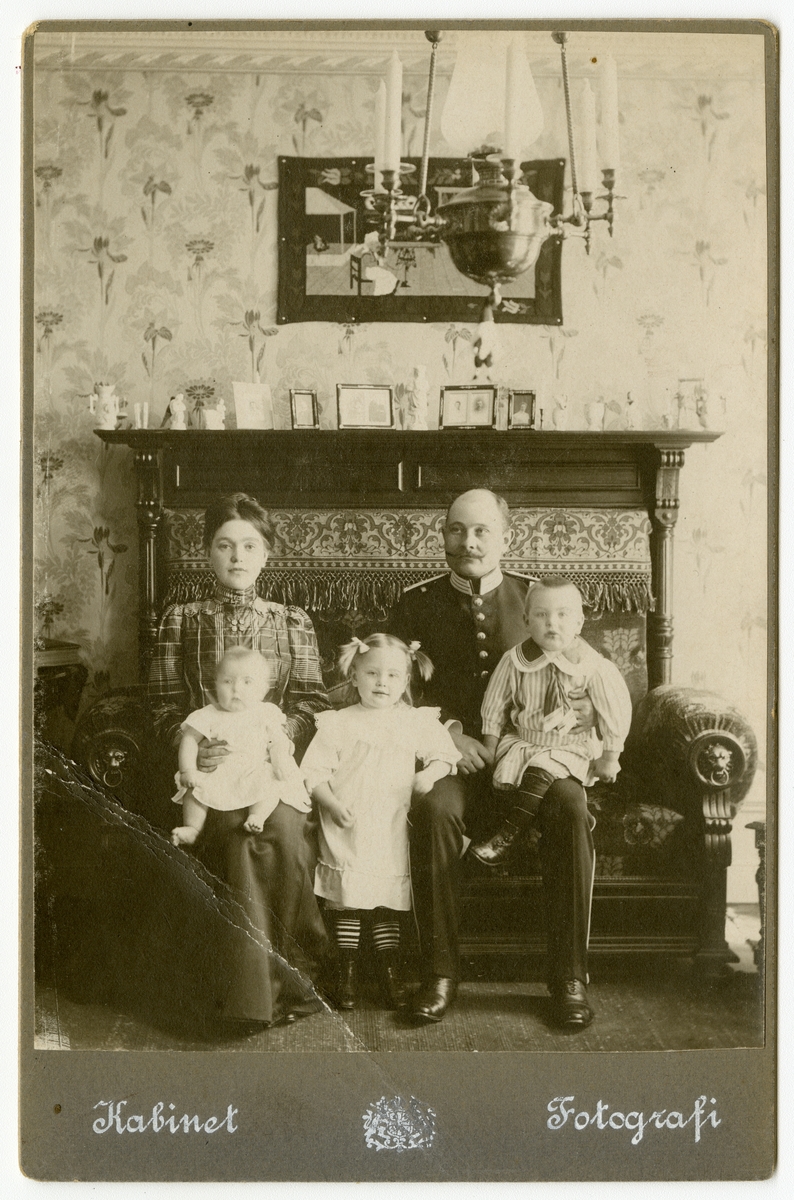 Porträtt av Carl Oscar och Anna Karolina Schwartz med barnen Siri, Sture och Elsa.