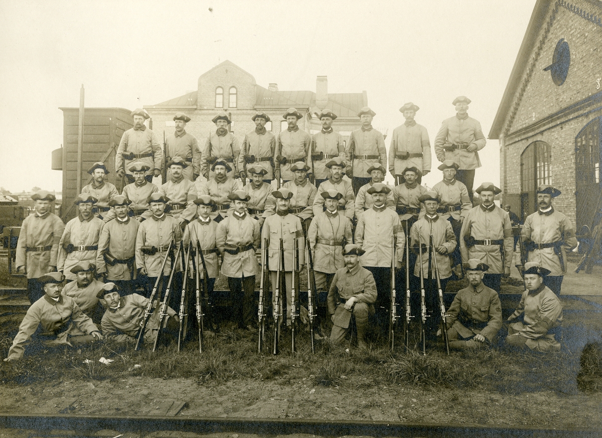 Mobiliseringen av landstormsmän i Åmål augusti 1914.