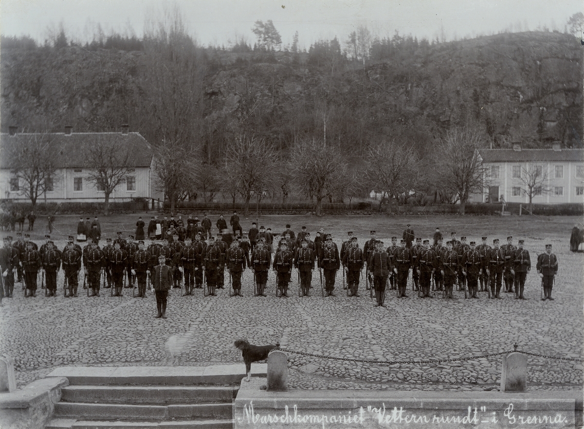 Livregementets grenadjärer I 3, marschkompaniet "Vätternrundan" i Gränna, 1900.