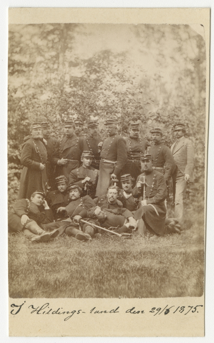 Titel: Grupporträtt av officerare i Hildingslund den 29 juni 1875.