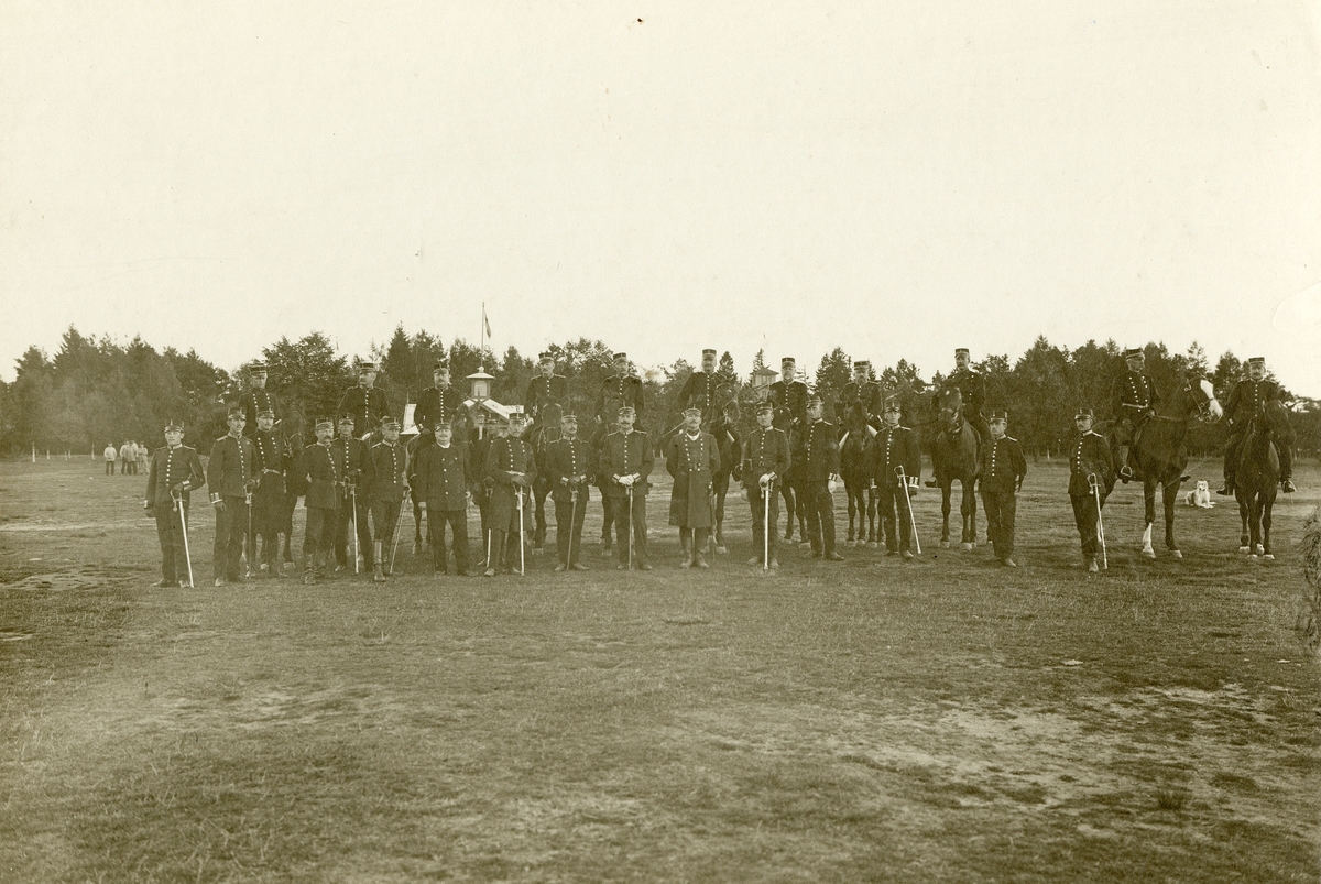 Grupporträtt av officerare vid Hallands regemente I 16 på Gunnebo Hed 1906.