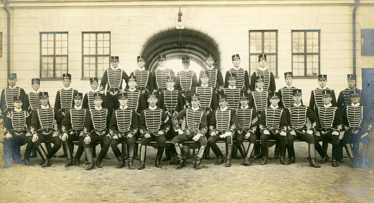 Grupporträtt av officerare och soldater vid Livregementets husarer K3.