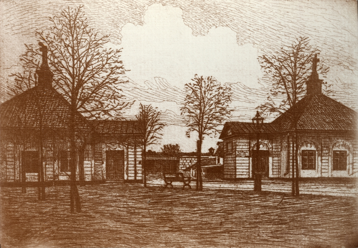 Text i fotoalbum: "Gamla tullhusen vid Nortullsgatan belägna vid gränsen mellan Stockholms stad och Karlbergs Kungsgård".