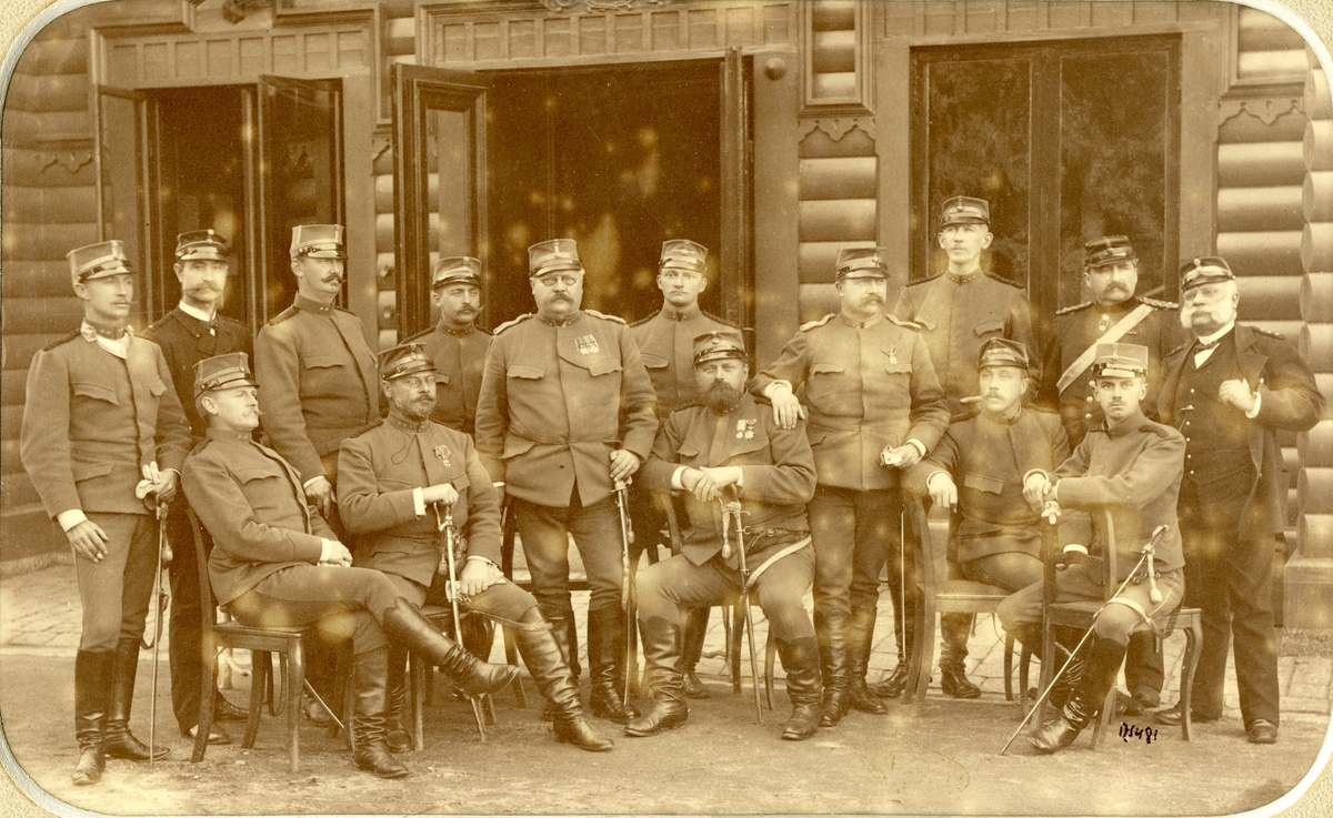 Grupporträtt av officerare och civilmilitär personal vid Svea ingenjörbataljon Ing 1, 1890.