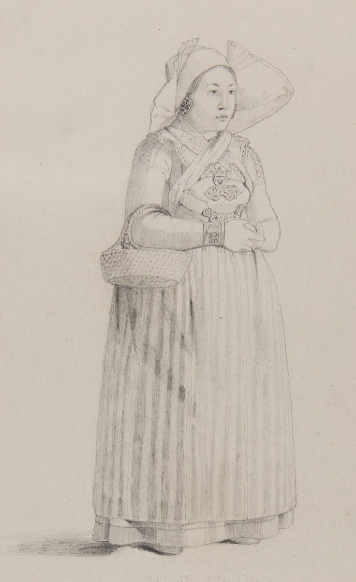 Kiersti Nils Olson Från Glostorp, Oxie Härad. Blyertsteckning av Otto Wallgren.