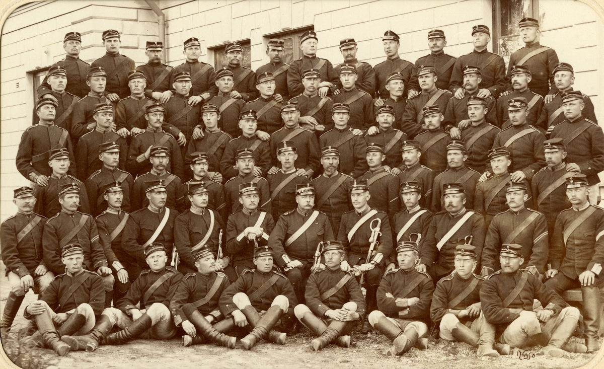 Grupporträtt av soldater, möjligen Svea artilleriregemente A 1, 1900.