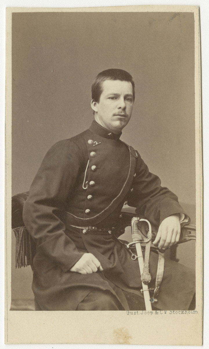 Porträtt av Gustaf Robert Eduard Bergendahl. underlöjtnant vid Göta artilleriregemente A 2.