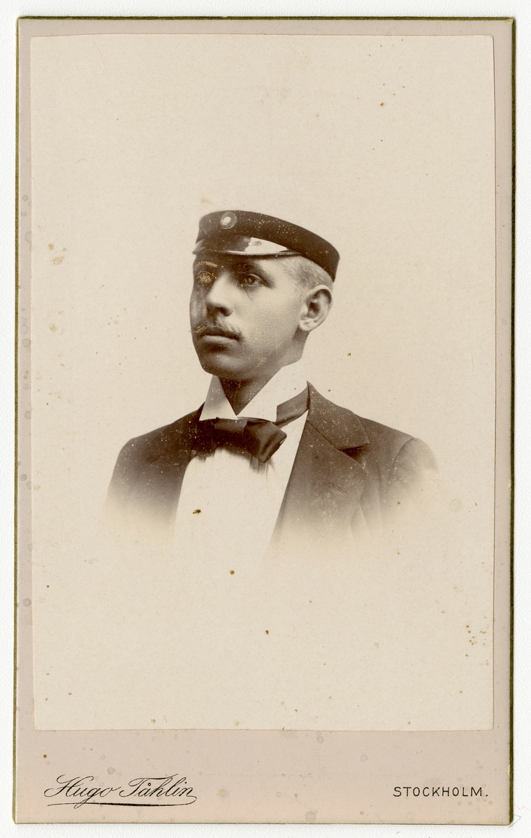 Porträtt av Gustaf Erland Boberg iförd studentmössa. Sedermera kapten vid Värmlands regemente.
