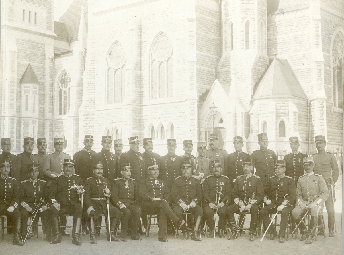 Titel: IV. arméfördelningen fältövningar på Södertörn utanför Oskarskyrkan i Stockholm 1905.