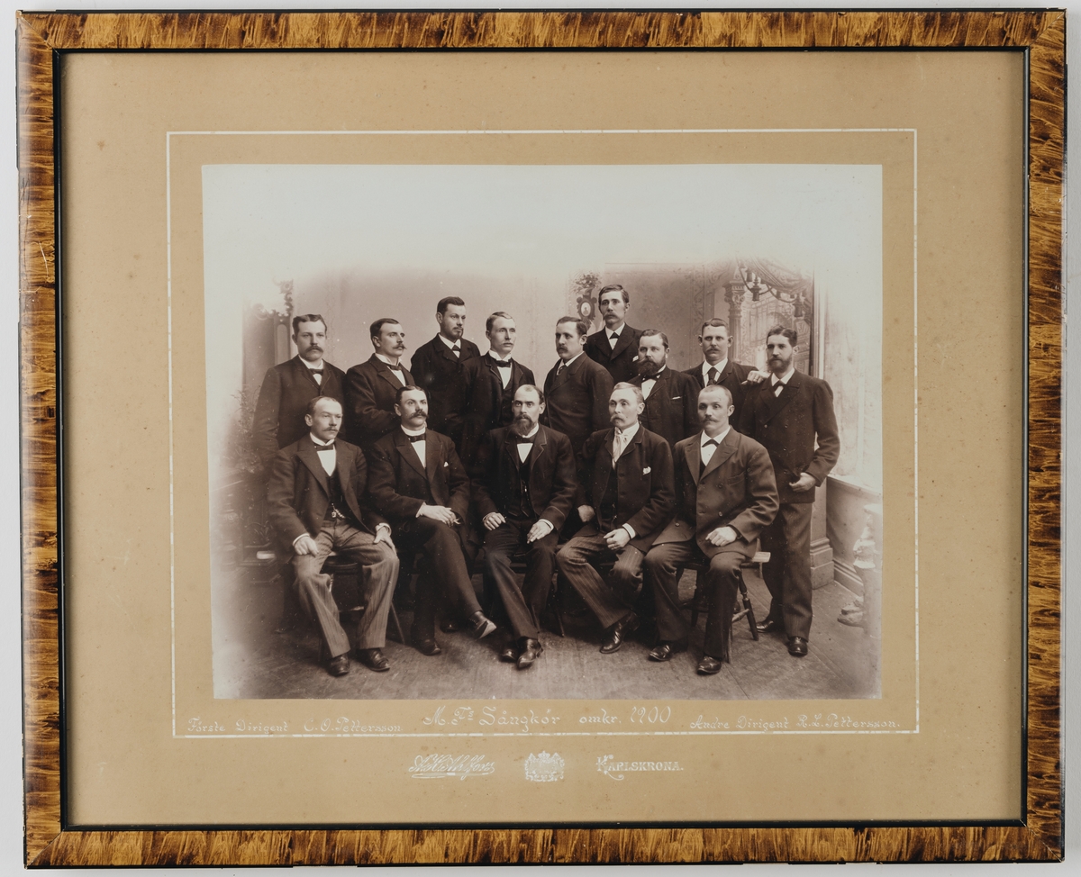 Bilden föreställer en grupportrett med MF:s sångkör omkring år 1900. Förste dirigenten C.O. Pettersson och andre dirigenten R.L. Pettersson är två av personerna på bilden.