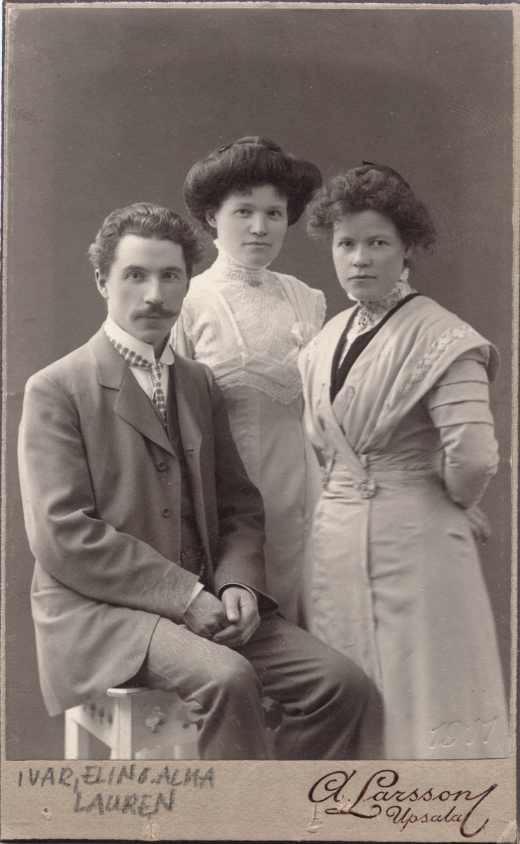 Kabinettsfotografi - Ivar, Elin och Alma Laurén, Uppsala 1911
