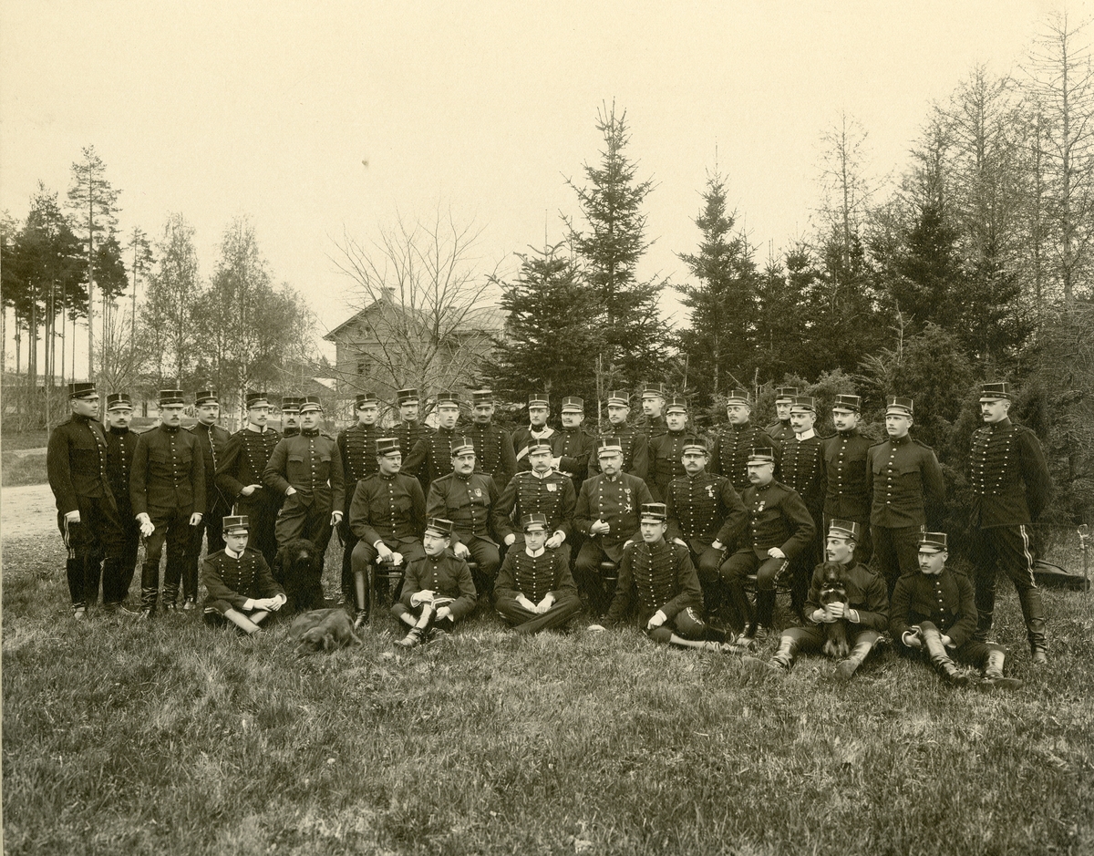 Grupporträtt av officerare vid Svea artilleriregemente A 5 på Marma skjutfält.