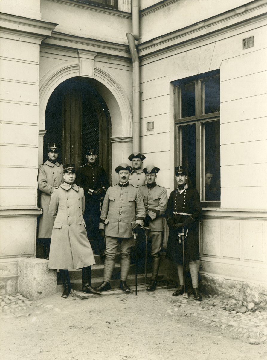 Grupporträtt av officerare vid Södermanlands regementets korpralskola, Strängnäs 1909-1910.