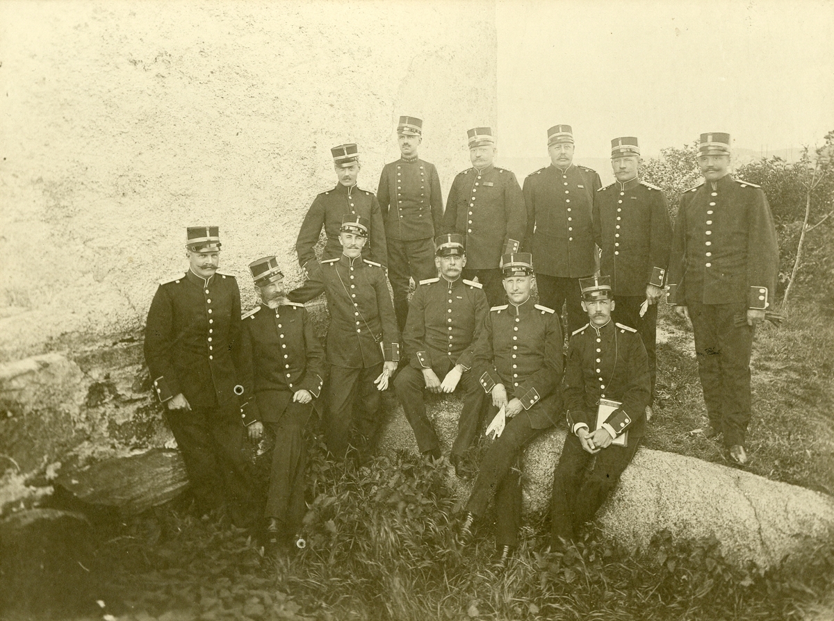 Grupporträtt av officerare, troligen bataljonsläkare på Backamo 1910.