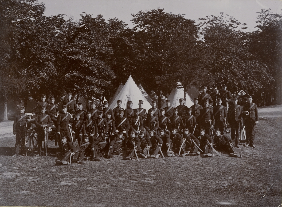 Grupporträtt av soldater vid Svea artilleriregemente A 1 på Ladugårdsgärde.