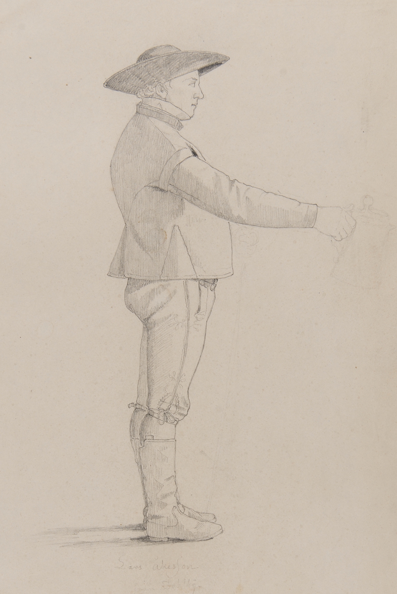 Dräkt." Lars Åkes son från Dahlby Torna härad."Blyertsteckning i storformat av Otto Wallgren