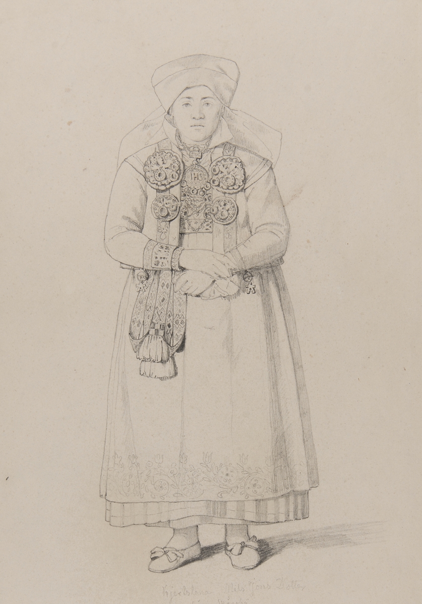 "Kjerstina Mils Jons Dotter från Skåroby Ljunits härad . Blyertsteckning i storformat av Otto Wallgren.