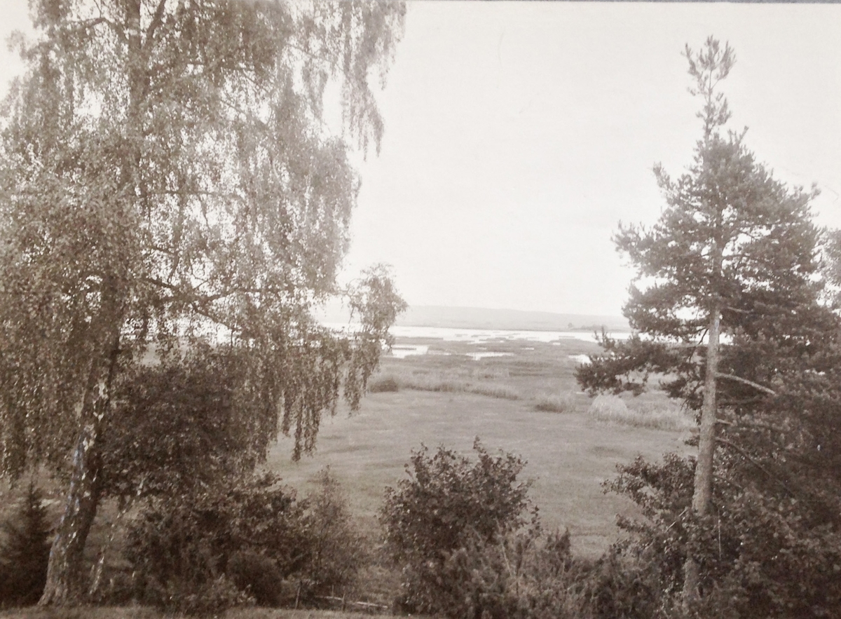 Strandparti från Ore backar mellan Degenäs och Trädstena. I bakgrunden Billingen. Skaraborgs län.