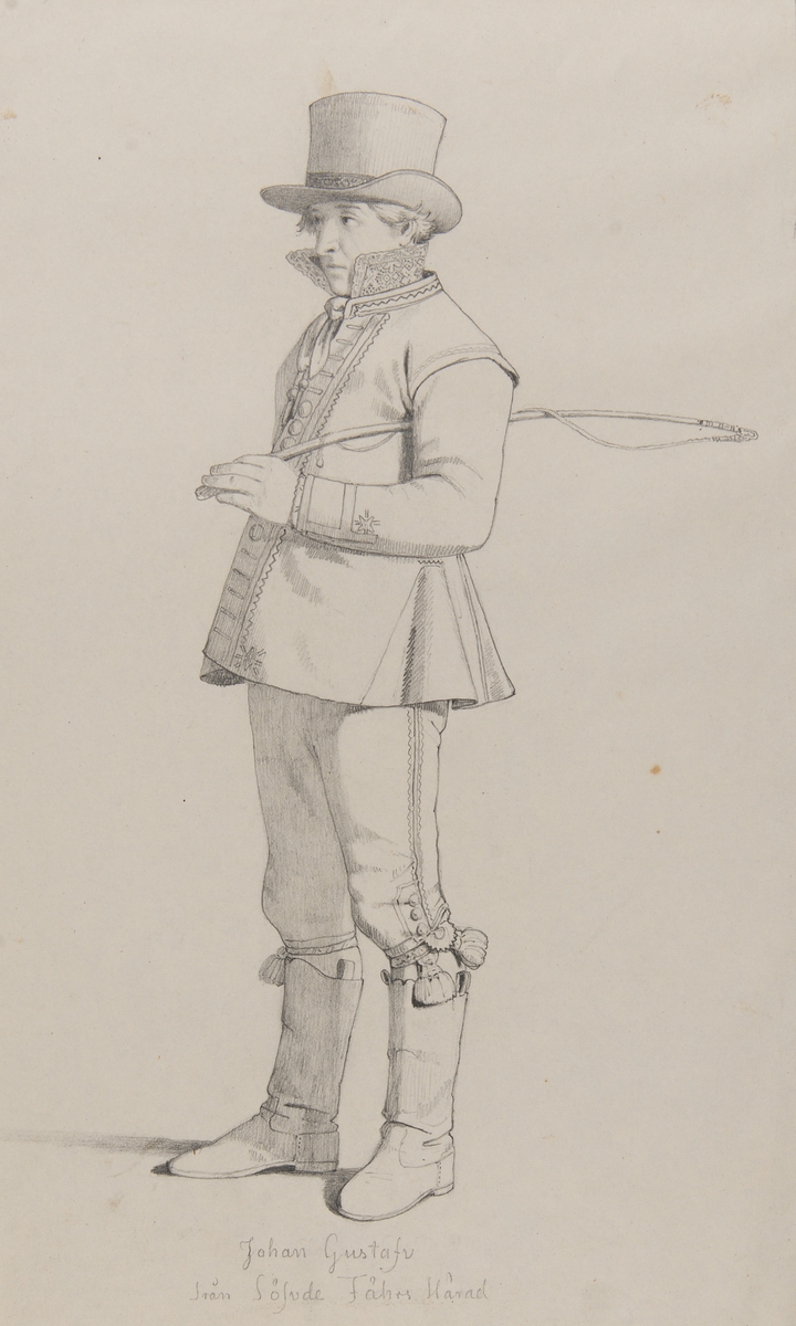 Johan Gustafv från Söfvde, Fährs Härad. 1800-talets första hält. Blyertsteckning i storformat av Otto Wallgren.